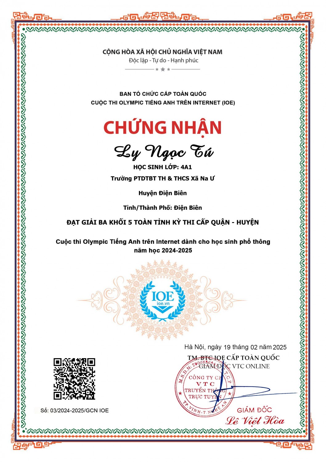 Chúc Mừng Các Em Học Sinh Tham Gia Cuộc Thi IOE Cấp Huyện! Vừa qua, các em học sinh trường Tiểu học và Trung học cơ sở xã Na Ư đã xuất sắc tham gia cuộc thi IOE (Internet Olympiad of English) cấp trường. Cuộc thi không chỉ là sân chơi trí tuệ giúp các em rèn luyện và nâng cao kỹ năng tiếng Anh mà còn là cơ hội để các em thể hiện khả năng, bản lĩnh và sự sáng tạo của mình. Những Điểm Sáng Nổi Bật Trong Cuộc Thi: