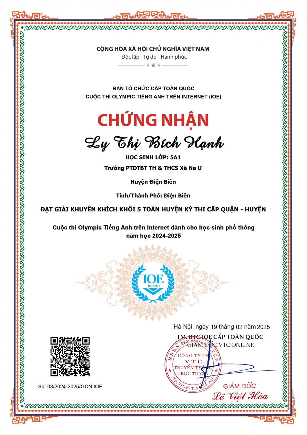 Chúc Mừng Các Em Học Sinh Tham Gia Cuộc Thi IOE Cấp Huyện! Vừa qua, các em học sinh trường Tiểu học và Trung học cơ sở xã Na Ư đã xuất sắc tham gia cuộc thi IOE (Internet Olympiad of English) cấp trường. Cuộc thi không chỉ là sân chơi trí tuệ giúp các em rèn luyện và nâng cao kỹ năng tiếng Anh mà còn là cơ hội để các em thể hiện khả năng, bản lĩnh và sự sáng tạo của mình. Những Điểm Sáng Nổi Bật Trong Cuộc Thi: